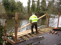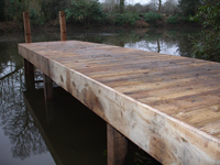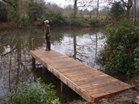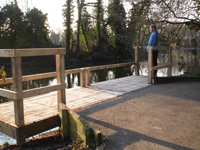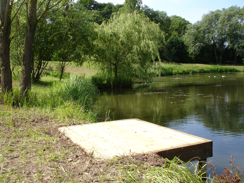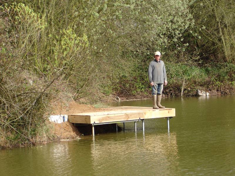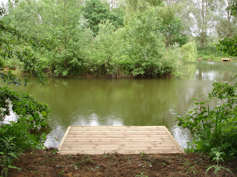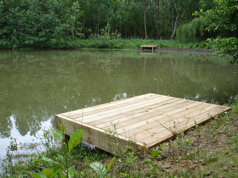 We offer a large range of custom built fishing platforms, disabled fishing pegs, floating pontoons and jetties, all installed to the highest standards. Designed to be both attractive and functional, we work to the customers requirements and build from a wide range of suitable materials. Fishing clubs who want the most swims from a water will benefit from our standard 1.5m x 1.2m match/pleasure platforms to fish from. Carp syndicates often choose larger decked platforms to allow big fish to be landed with ease. Trout fishery owners with confined banks can offer customers improved ease of casting by choosing our jetties or floating pontoons.